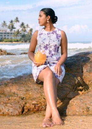 Purple Floral Dress Sleeveless Dress Front Button Closure Model Size – UK 12 Model Wears UK 12 Made in SL Fabric – Polyester blend